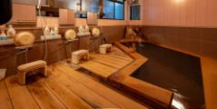 - 木の温もりと香りに包まれて、ほっと心が和む檜風呂。